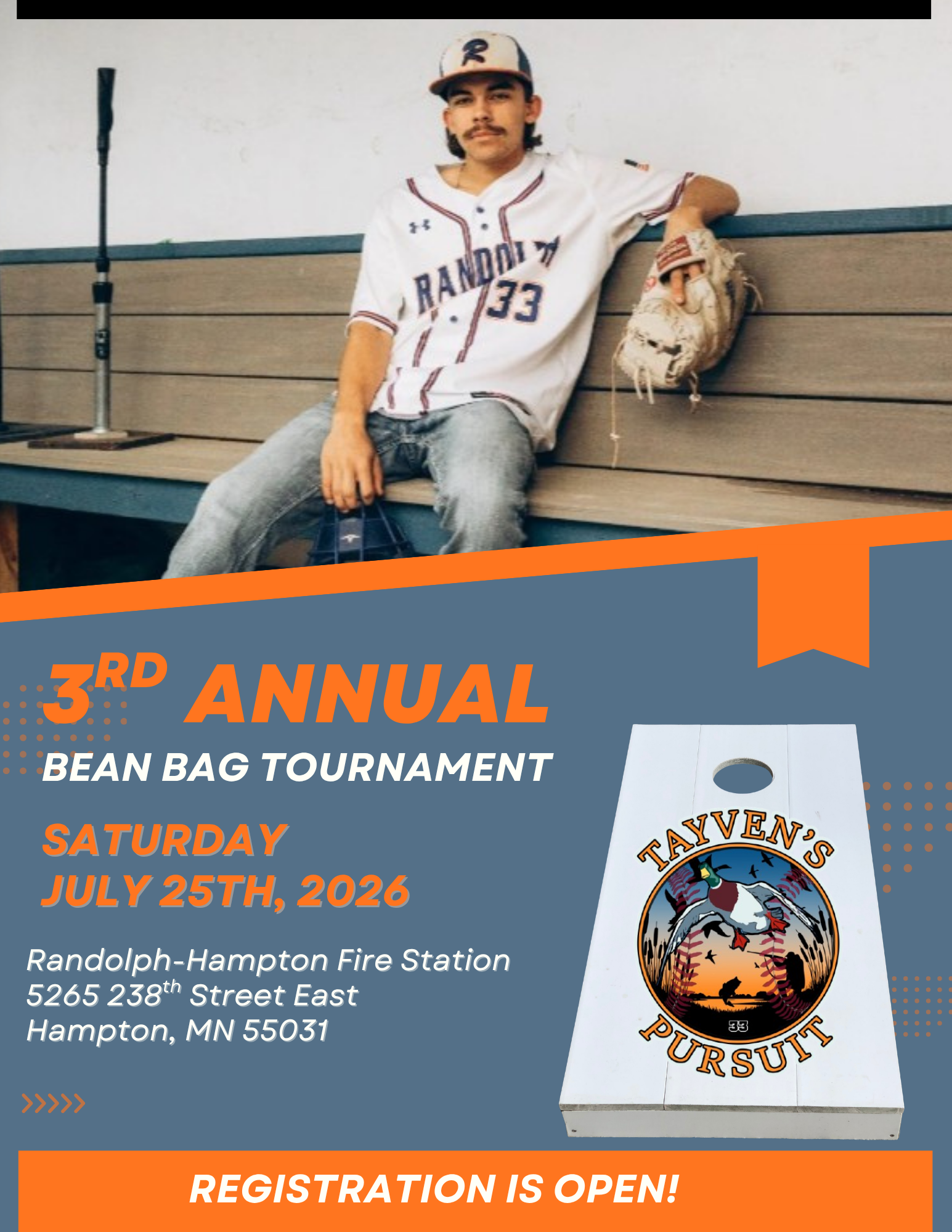 Silent Auction: Following the tournament, each bean bag board set and scoreboard will be auctioned off in a silent auction to benefit our mission of supporting student athletes and outdoor enthusiasts.